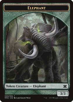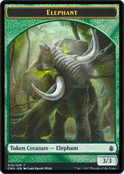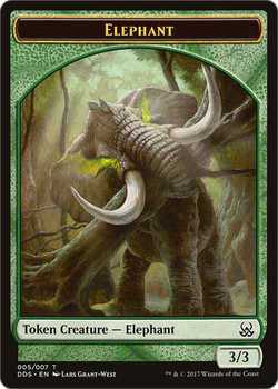 Sources: Assault // Battery, Bestial Menace, Elephant Ambush, Elephant Guide, Generous Gift, Kazandu Tuskcaller, Selvala's Charge, Terastodon, Trumpeting Herd